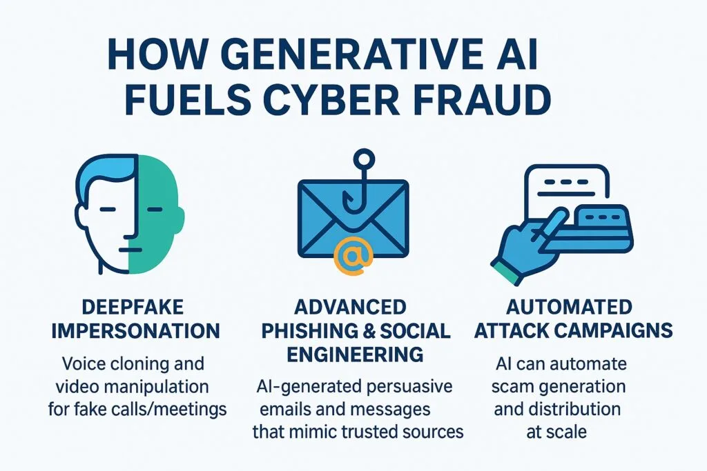 In 2025, the digital world is more connected and advanced than ever before. While this brings many benefits, it also opens new doors for cybercriminals. One of the biggest dangers emerging right now is generative AI cyber fraud. This isn’t just about simple email scams anymore. We’re talking about incredibly realistic, AI-driven scams that can mimic voices, create fake videos, and write convincing messages, making it harder than ever for businesses to tell what’s real and what’s fake.
